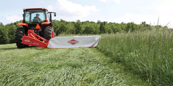 The KUHN GMD 355 mounted disc mower is great for operators who are looking for versatility, high cutting performance and durability.