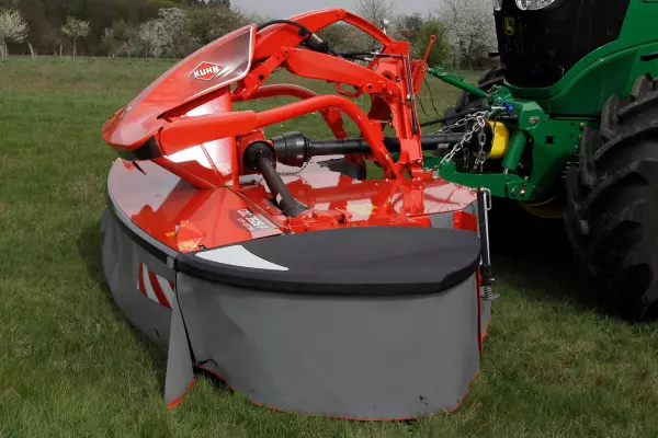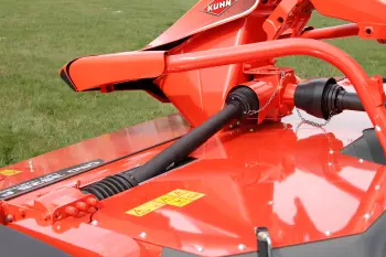 KUHN is the reference in the front mount mower market with the GMD 25 F Series front mounted disc mowers. These mowers feature an attractive, functionally designed headstock that offers exceptional terrain following, flexible enough to adapt to any terrain changes encountered in the field. The compact frame, shaped like a hammerhead shark, offers improved visibility for the operator. These machines feature the heavy-duty Optidisc® Elite cutterbar utilizing a through-bolted design and lubed-for life technology, which guarantees minimal maintenance and maximized cutting efficiency. Protectadrive® safety provides maximum reliability and quick service, and the Fast-Fit® knife system allows you to quickly change out the knives with the use of a simple tool. For even greater mowing efficiency, combine a GMD 25 F Series front mount mower with one of KUHN’s GMD 30 Series rear mounted mowers.