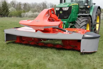 KUHN GMD 25 F Series front mounted mowers, with working widths ranging from 10’2” to 11’6 can be used on their own, or as part of a triple-mower combination allowing you to cut up to 32’6” in one pass.