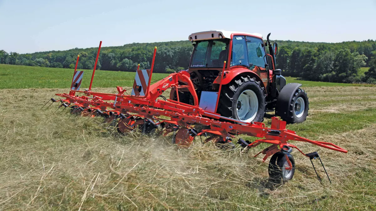 KUHN 1002 Series mounted tedders, with working widths of 21’4”-25’7”, are designed for use with small to medium tractors, so you can keep fuel costs low. Two models are equipped with small-diameter rotors and one model (GF 7802) is more suitable for tedding long-stemmed crops.