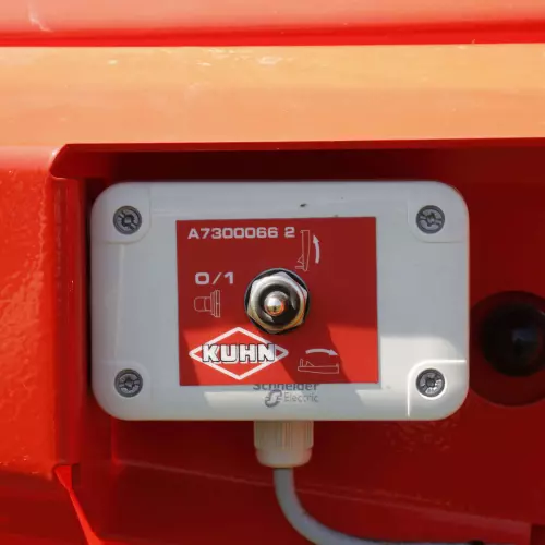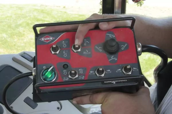 For added convenience, a secondary remote is included with the 4270 M Primor to operate the tailgate outside of the cab. For in-cab control, the tractor-mounted control box provides easy operation and adjustments from the cab.