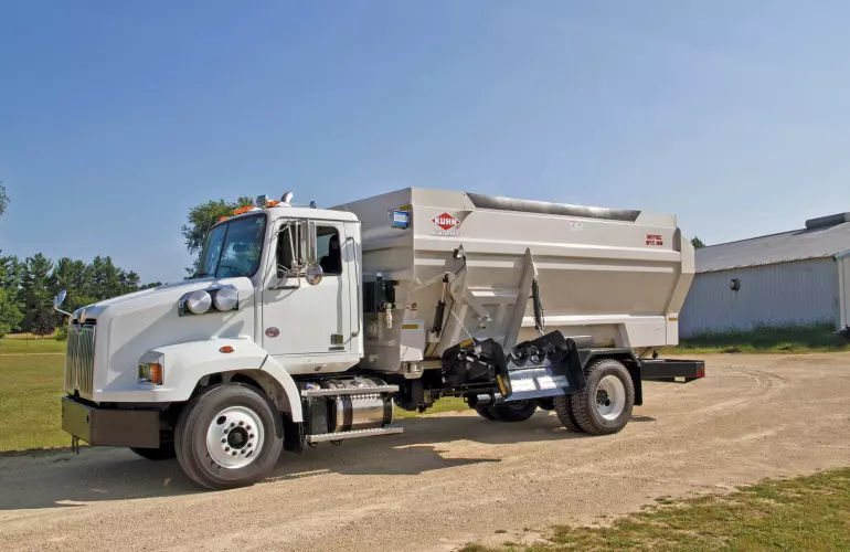 The close auger tolerances and raised lower auger design provide a fast, consistent discharge from beginning to the end of unloading. This results in even feed placement across the entire length of the bunk without a delay for mixer cleanout. The auger design also eliminates material carryaround versus a chain and apron floor design.
