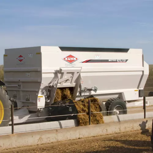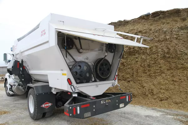 The BTC delivery box uses a simple, twin-auger design for consistent feed flow to the discharge, for fast, even feed placement across the entire length of the bunk.
