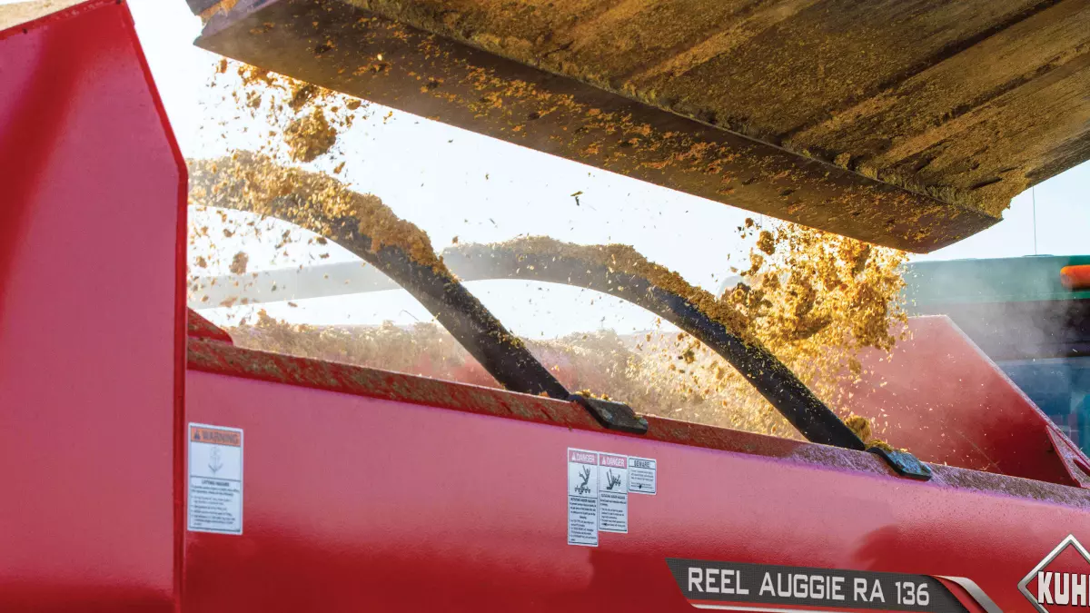 KUHN Knight RA 136 & 142 Reel Auggie® mixers provide the ultimate versatility, durability and performance. Two models are available in trailer, truck or stationary configurations, and offer capacities of 360 and 420 ft³.