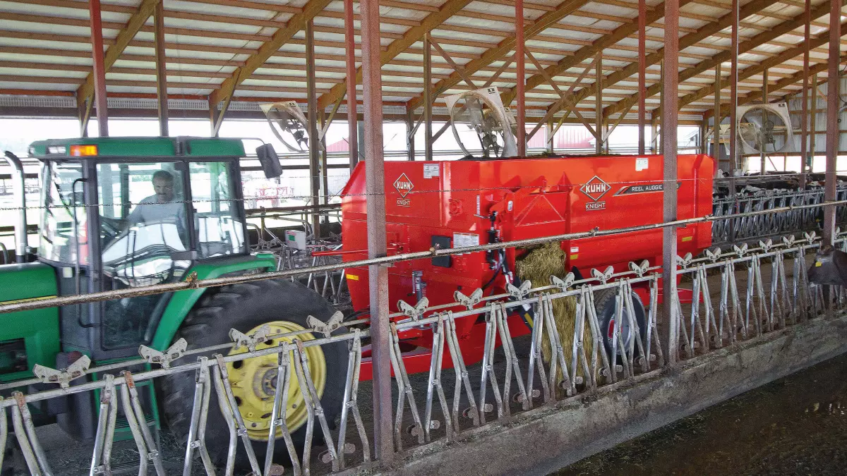 Quality performance, with the lowest possible input costs is the goal of every operation. The fast, gentle mixing of KUHN Knight reel mixers helps maximize efficiency and minimize expense. The reel and auger design eliminates much of the force and pressure seen with other mixer types, resulting in low horsepower requirements and, correspondingly, less fuel consumption for economical operation.