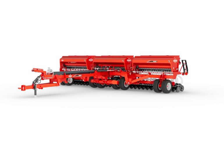The KUHN 9600 folding grain drill offers a high-efficiency solution built for durability and designed to help farmers seed more acres with less downtime. Available in 30' (9.1 m) and 40' (12.1 m) working widths, the KUHN 9600 offers flexible configuration options to suit a wide range of operational needs. Whether you're managing large acreage or aiming to streamline your seeding process, the KUHN 9600 delivers the capacity, durability and adaptability your operation demands. Farmers can choose from 6",7.5" or 10" (15.2,19.1 or 25.4 cm)row spacing to match specific crop needs and optimize seed placement for maximum yield potential.